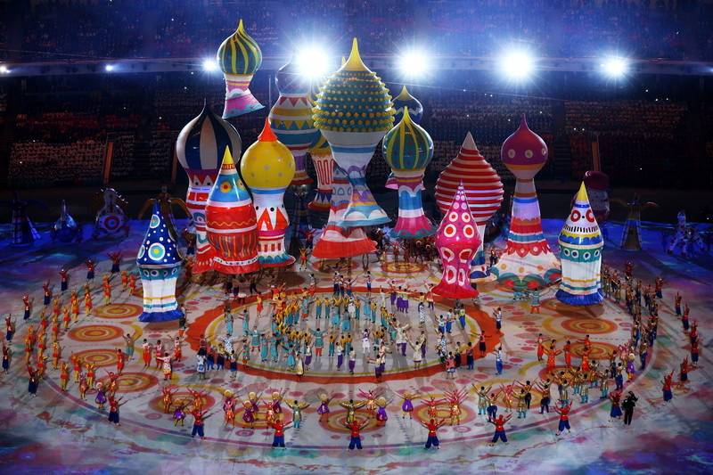A sportolók bevonulása után ismét a show következett: utazás Oroszország történetében, művészetében és kultúrájában, melynek során felbukkant többek között az 1917-es forradalom, a balett, Moszkva, vagy éppen a mostani játékok három kabalafigurája, a jegesmedve, a hópárduc és a nyúl.
