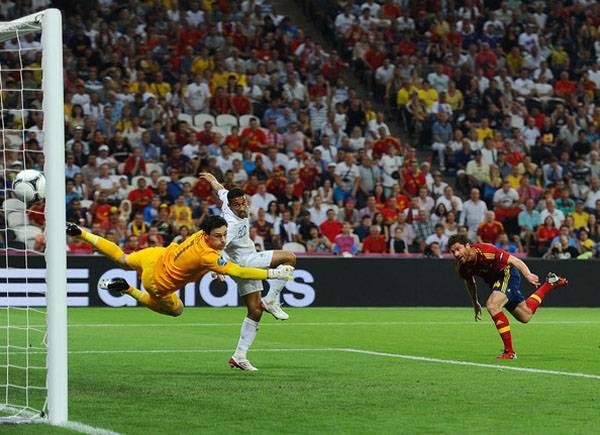 A spanyol válogatott a világversenyeket tekintve zsinórban nyolcadik, kapott gól nélkül megvívott egyenes kieséses meccsén jutott túl a franciákon, és a két évvel ezelőtti világbajnoksággal ellentétben nem a végjátékra tartogatta a győztes gólt. A századik válogatottságát ünneplő Xabi Alonso fejese után a címvédő játékosai eldugták a labdát a középpályán az öt védővel kezdő franciák elől, akik 90 perc alatt csupán egyszer találták el Casillas kapuját. A legvégén Xabi Alonso 11-esből duplázott, így a spanyolok tétmeccsen először verték meg ellenfelüket.