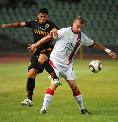 A várakozásoknak megfelelően Luis Enrique, az AS Roma új vezetőedzője a legerősebb összeállításban küldte pályára csapatát a Puskás Ferenc-stadionban, így a három 2006-os olasz világbajnok, a kapitány Francesco Totti, Simone Perrotta és Daniele De Rossi, valamint az új igazolások, az argentin Gabriel Heinze, valamint a Bajnokok Ligája-győztes FC Barcelonától igazolt Bojan Krkic is ott volt a kezdő tizenegyben a vártnál kevesebb, mintegy 8 ezer néző nagy örömére. A Róma rohamairól szólt az első félidő, főként Krkic veszélyeztetett többször is, a támadó előbb egy szóló végén adott be középre, majd egy távoli lövéssel a felső lécet találta telibe.
