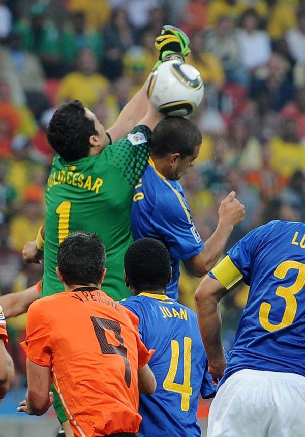 Negyeddöntő: Hollandia–Brazília 2-1 (Gól: Sneijder 53., 63., ill. Robinho 10. Kiállítva: Felipe Melo 73.).