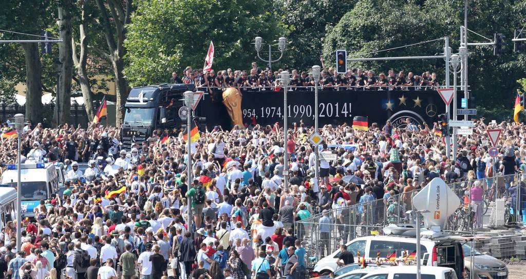 A világbajnokok busszal indultak a belvárosba, és a Fanmeile előtt átszálltak egy nyitott kamionba, amely az utcákat ellepő ünneplő tömeg miatt csigalassúsággal tette meg a diadalmenet utolsó kilométereit.