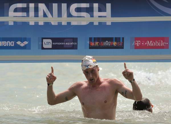A címvédő, pekingi olimpiai bronzérmes német Thomas Lurz nyerte a magyarországi úszó-, műugró-, műúszó- és nyíltvízi Európa-bajnokság első aranyérmét: a hosszútávúszó a férfiak 10 km-es viadalán diadalmaskodott Balatonfüreden.