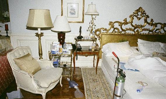 A fényképek tanúsága szerint az énekes Los Angelesben bérelt házának hálószobájában tucatnyi oxigénpalack állt az ágy mellett egy infúziós állvány és a Propofol nevű műtéti altatót tartalmazó palackok társaságában. A szobában még lorazepam, diazepam és lidokain tartalmú gyógyszeres üvegek sorakoztak – közölte a The Daily Telegraph online kiadása.
