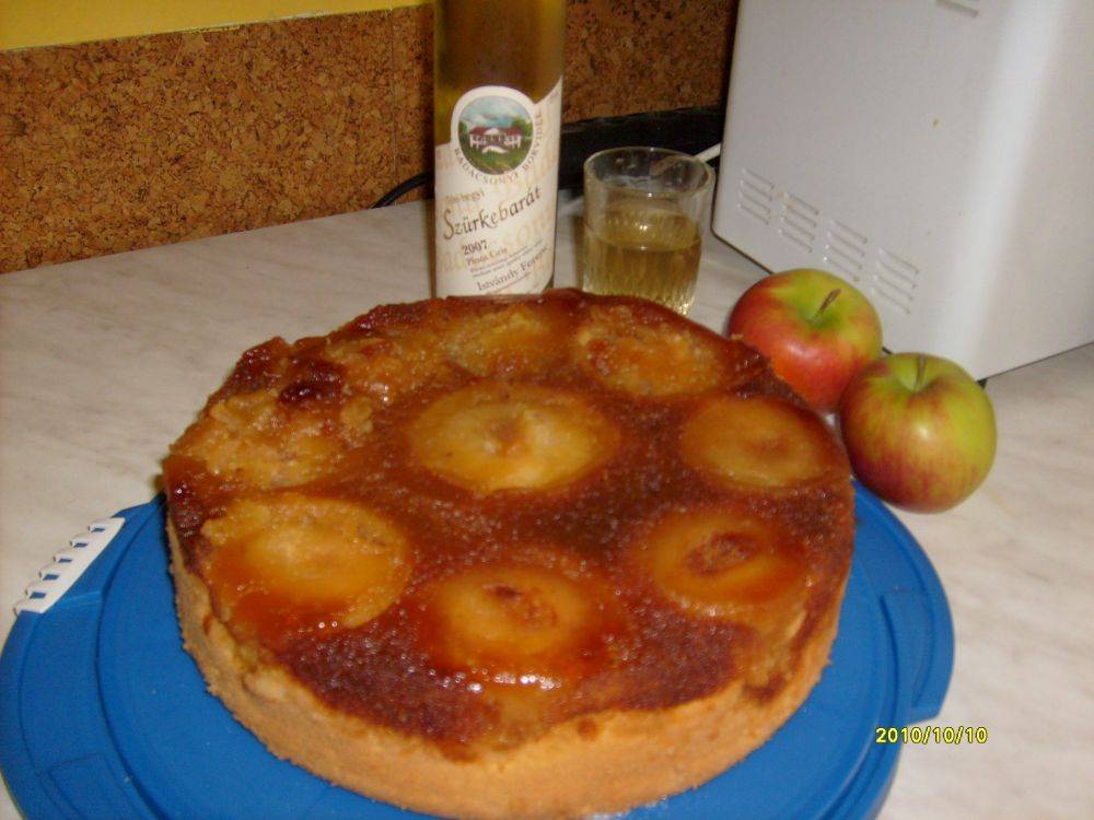 Elkészítés: Keverjük össze a hozzávalókat, öntsük tepsibe, majd helyezzük a tészta tetejére a megpucolt és nyolcba vágott almagerezdeket. Süssük 35 percig közepesen meleg sütőben.