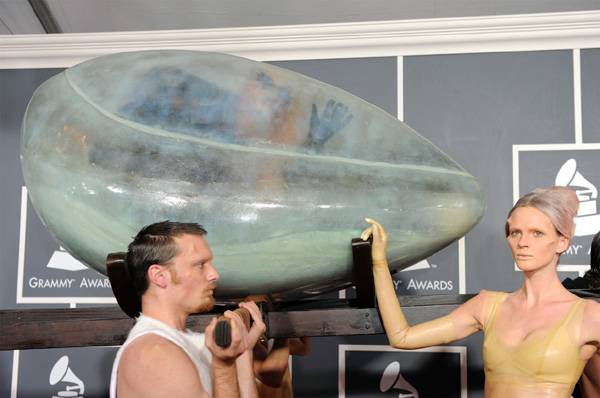 Eminem, Dr. Dre és Rihanna közösen adta majd elő az I Need a Doctort, de az este folyamán több más előadó is művésztársaival osztotta meg a színpadot. A show-t a soul királynőjének, a műtét után lábadozó Aretha Franklinnek szóló zenei összeállítás nyitotta meg, Christina Aguilera, Florence Welch, Jennifer Hudson, Martina McBride és Yolanda Adams előadásában. A szervezők nem fukarkodtak a meglepetésekkel: Lady Gaga például egy tojásból bújt elő a Born This Way performanszán, s a televíziónézők tízmilliói által figyelemmel kísért műsor Bruno Mars szereplése alatt fekete-fehérre váltott. A díjkiosztón olyan élő legendák léptek fel, mint Mick Jagger – aki először szerepelt a Grammy pódiumán –, Barbra Streisand és Bob Dylan. A tavalyi gála nagy győztese Beyoncé volt, akit hat Grammyvel jutalmaztak, köztük az év daláért járó elismeréssel.