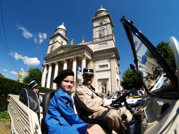 A legnagyobb sikernek a szatmáriak körében a Citroën CV2 kacsák és a szintén Citroën kisbusz örvendett, melynek sofőrjeik és utasaik a Louis de Funes-filmek stílusában francia csendőregyenruhában, illetve apácának öltözve mutatták be oldtimer autóikat. Az autókaraván azonban csak egy órát maradt a megyeközpontban, utána hamarosan visszatért a kiállítás valódi helyszínére, a pusztadaróci kastélykertbe.