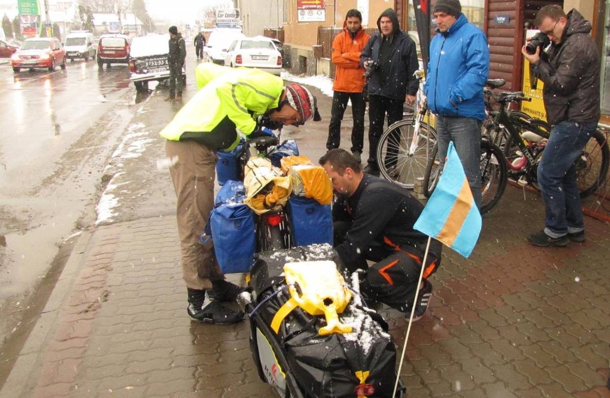 Két nappal azelőtt, hogy elindult legújabb túrájára, a Tien San-hegységig tartó bringaútra, ellátogatott Bukarestbe, a békeszövetség romániai kirendeltségére, az illetékesek által megszervezett interjúra.