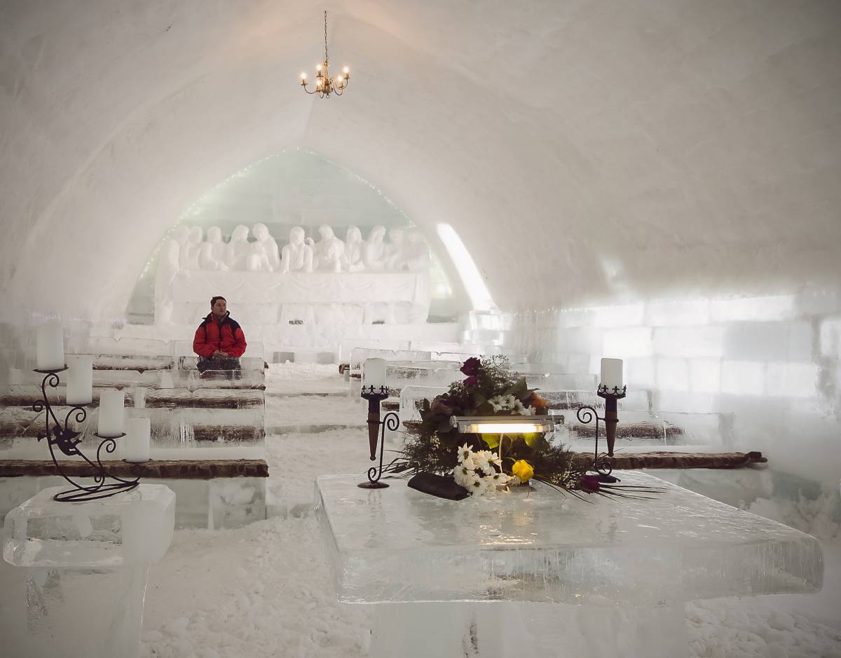 A jégtemplomot, amelyet idén immár kilencedik alkalommal építettek meg, különböző felekezetek papjai áldják meg. A korábbi években esküvőket és keresztelőket is tartottak a jégből épített kápolnában.