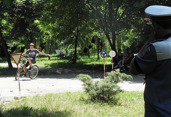 Az első próbán a forgalmi szabályok ismeretéről egy írásbeli vizsgán tettek tanubizonyságot, a második szakaszban kerékpárral kellett közlekedniük a városi parkban kialakított útszakaszon, forgalmi táblák közt, ügyelve a szabályok betartására.