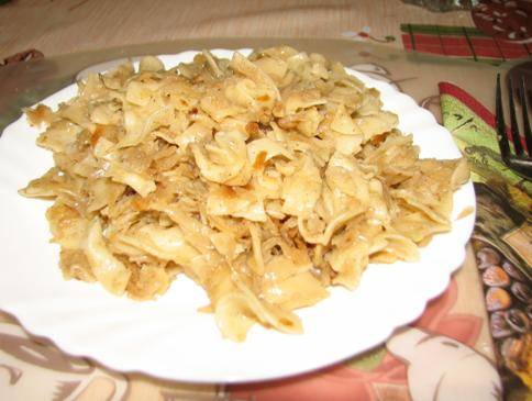 Elkészítés: A káposztát feldaraboljuk, kivesszük a torzsáját. A feldarabolt káposztát aprítógéppel összeaprítjuk, besózva egy tálba tesszük, állni hagyjuk pár percig. Sós, olajos, forrásban lévő vízben feltesszük főni a tésztát, megfőzzük. Amíg a tészta készül, egy jó nagy lábosban felhevítjük a libazsírt, beledobjuk a kifacsart káposztát, alaposan megszórjuk törött borssal, üvegesre pároljuk. Amikor kezd barnulni, hozzáadjuk a cukrot, jól elkeverjük, hagyjuk karamellizálódjuk, majd mehet bele a méz is. Amikor már kellően bebarnult, felöntjük a borral, hozzáadjuk a köményt, ha kell, még sózzuk, borsozzuk. Készre pároljuk. A tésztát leszűrjük, hozzáadjuk a megpárolt káposztához. Jól elkeverjük, összesütjük, hagyjuk kicsit lekapni az alját. Egy teáskanálnyi vajjal még elkeverjük és máris tálaljuk.