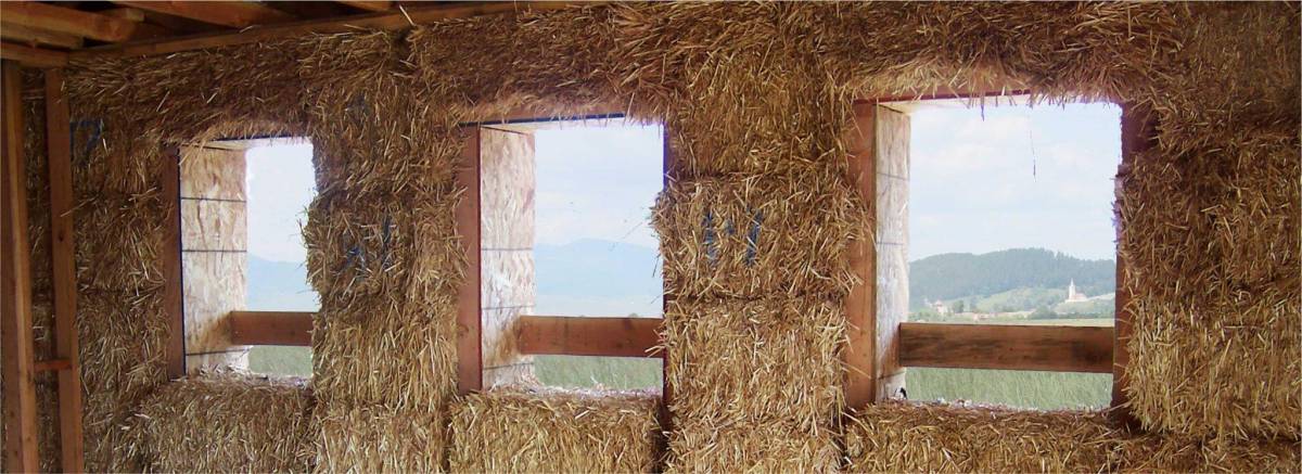 A szalmabálaházakat rendszerint cement alapra építik, egy faszerkezetbe helyezik el a szalmabálákat, amelyeket alaposan összepréselnek – magyarázta a szakértő az építkezés folyamatát. Ezt követően belülről legalább három centiméter vastag agyagvakolattal vonják be, kívülről pedig az agyag mellett mésszel is, ugyanis ez tűzvédelmet nyújt.
