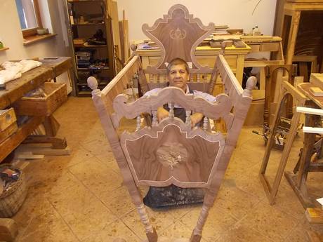 Rostás Árpád azt is elmondta, hogy szeptember 26-án szentelik meg a bölcsőt, és a tervek szerint másnap az egyik spanyol lovagrend képviselőivel adják át Londonban. Rostás Árpád dolgozott már a Vatikánban és Versailles-ban is. Párizsban a Napkirály dísztermének lépcsőjét és parkettáját újította fel.