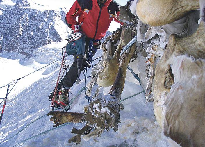„A srapnel még ott volt a koponyájában. A Monarchiáért harcolt, könnyen lehet, hogy magyar fiú volt\" – mondta el Nicolis, aki hozzátette, a frontvonal jó része 3000 méter magasban húzódott. Olasz régészek egy 3630 méter magasan végzett ásatáson rábukkantak egy fából épített viskóra is, amely az osztrák–magyar hadsereg által üzemeltetett kötélpálya motorját rejtette: ezen szállították az utánpótlást a csapatoknak.