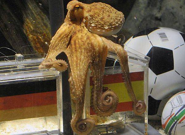 A polipot úgy jósoltatták gondozói, hogy országzászlókkal ellátott dobozba tették ennivalóját, s Paul arra a csapatra \"tippelt\", amelyikből elfogyasztotta napi betevőjét.