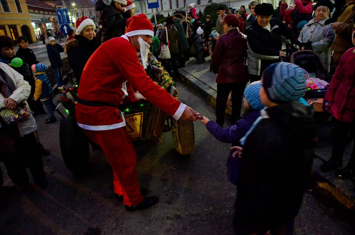 A gyerekek tovább énekeltek, egy krampusz gitárral kísérte őket. A Mikulás kedves mosollyal cukorkát osztogatott, de virgácsot is kaptak a gyerekek az egyik krampusztól azzal a megjegyzéssel, hogy az egy megelőző eszköz, csupán rá kell mutatni és mintegy varázsütésre angyallá változtatja a csintalankodót. Miután az összes cukorka elfogyott, a Mikulás átvette azt az adományt, amelyet a helyi iskola alkalmazottai a csíkszeredai beteg gyerekek számára gyűjtöttek, majd beült szarvasai által húzott kerekes szánjába és távozott.