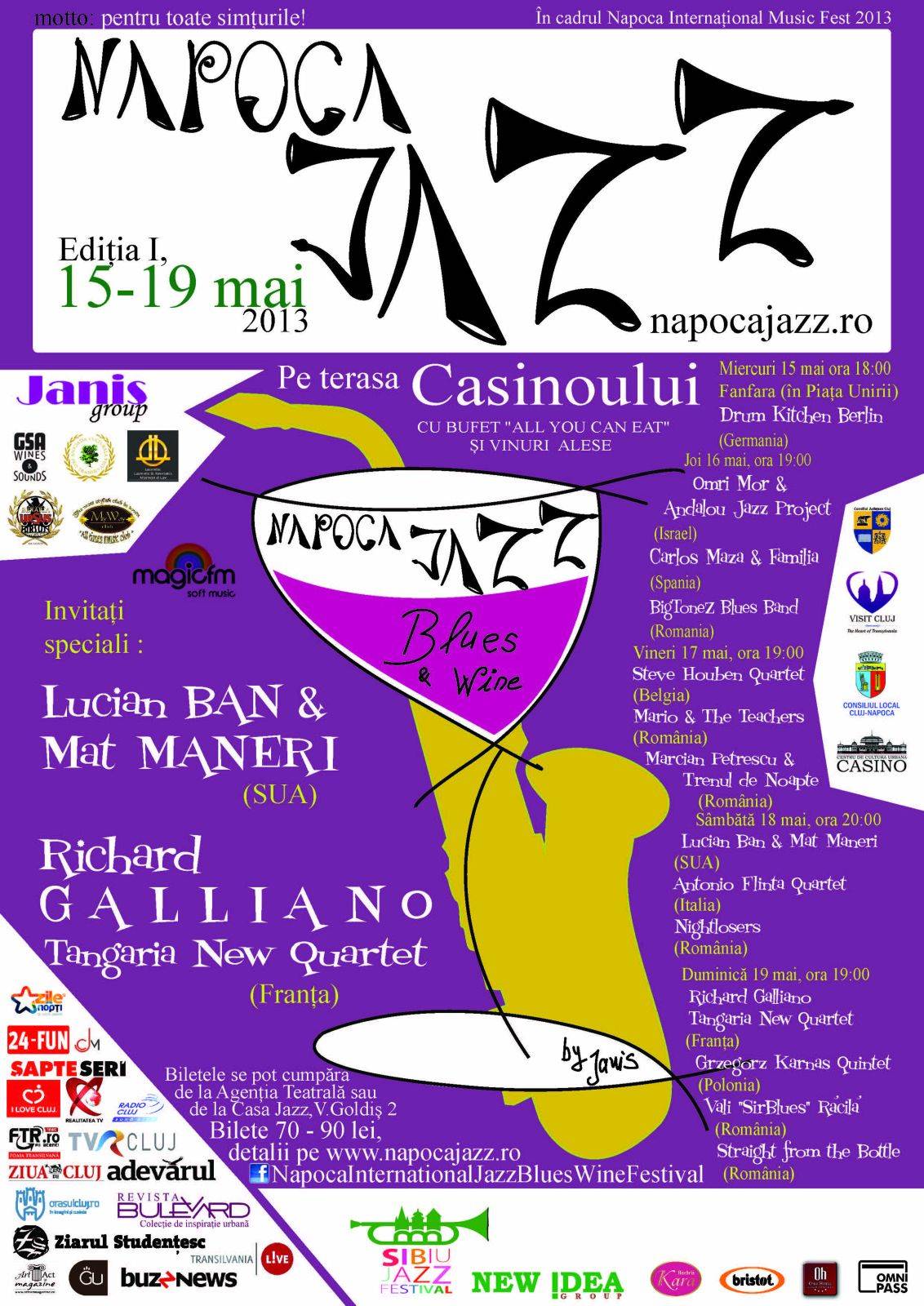 A „Napoca Jazz, Blues & Wine Festival\" látványosan gazdagodott a művészi tartalma látványosan gazdagodott azáltal, hogy az utolsó pillanatban megerősítette részvételét a világ egyik legjelentősebb dzsesszzenésze, Richard Galliano - akit a Tangaria New Quartet kísér -, valamint a leghíresebb román származású kortárs „jazzman\", Lucian Ban, akit a műfaj körében egy másik népszerű név, Mat Maneri kísér.