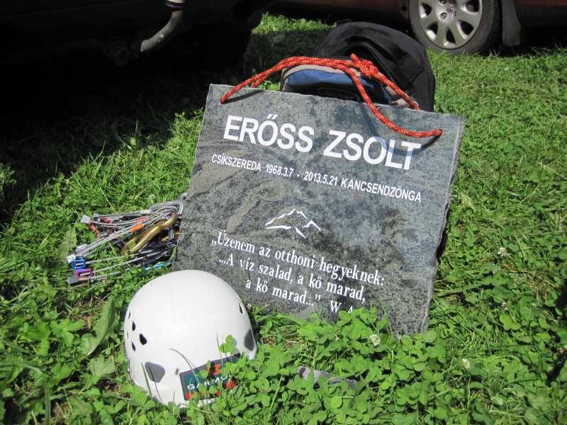 A gránit emléktáblát a hátára rögzített hegymászókötéllel Kollár Lajos vitte fel a csúcsra. Mint ismeretes, a gyergyói származású Erőss Zsoltnak és a gyöngyösi Kiss Péternek május 20-án sikerült feljutnia a Nepál és India határán található, 8586 méteres Kancsendzönga csúcsára. A hegymászók kimerültséggel küzdöttek, és a lefelé vezető úton el is szakadtak egymástól. Eltűnésüket két nappal később jelentették be hivatalosan.