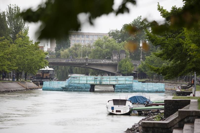 Ezekből a dróthálókockákból építették meg azt a 23 méter átmérőjű lebegő korongot, amely átér a Béga egyik oldalától a másikig. A híd felszínét ledeszkázták, és pillepalackokból készült, kivilágítható korlátokkal látták el. Az építmény két hétig marad a vízen. Ez idő alatt koncerteket, szabadtéri előadásokat szerveznek rajta.