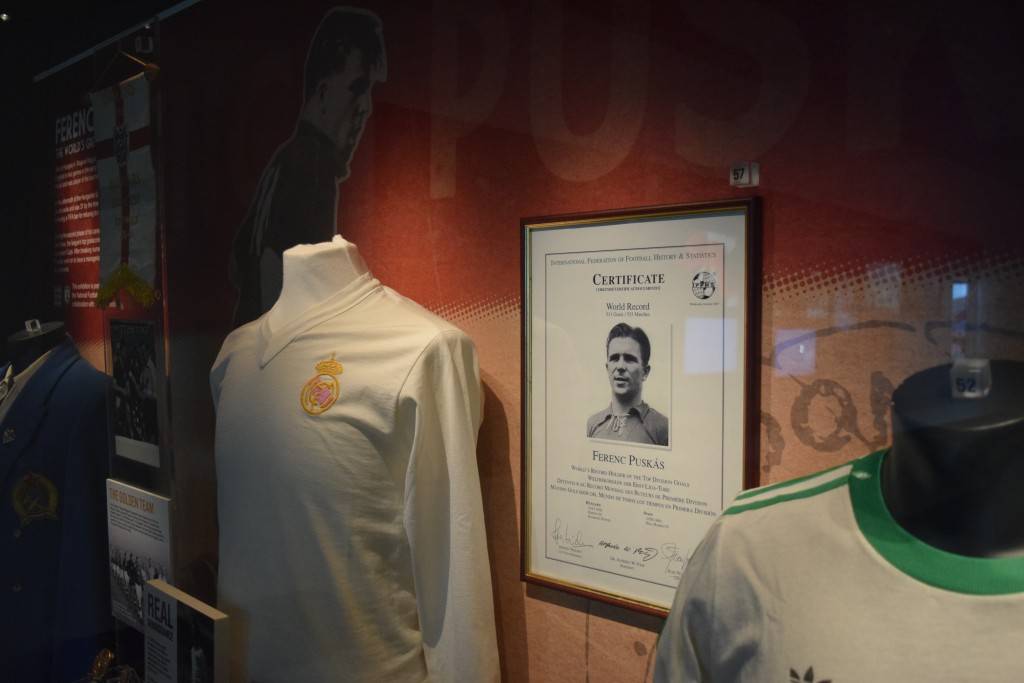 A futballmúzeumban kiállítottak mintegy 70 felbecsülhetetlen értékű ereklyét, köztük azt a zászlót, amit David Wright angol csapatkapitány adott a Népstadion kezdőkörében Puskás Ferencnek a 7-1-re végződött magyar–angol találkozón 1954. május 23-án. Emellett az érdeklődők megtekinthették többek között Puskás olimpiai aranyérmét, vb-ezüstérmét, a helsinki olimpiai döntőben viselt cipőjét, Real Madrid-mezét, a spanyol bajnokság gólkirályának járó Pichichi-trófeákat, a spanyol bajnoki címért járó kupákat, a BEK-serlegek kicsinyített másolatát, a FIFA-érdemrendet és a FIFA Puskás-díjat.