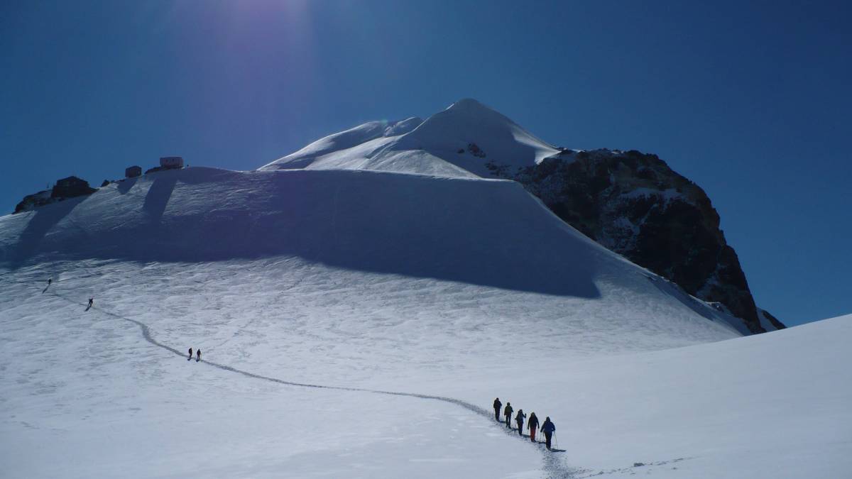 További állomások: Karkara – 2200 m, North Inylchek alaptábor – 4000 m. Karkarából akklimatizációs túrákat tesznek a környező hegyekbe, majd két-három nap után folytatják az utat az alaptáborból. Innen kezdődik a mászás, amely 4 táboron át vezet a csúcsig: 1-es tábor (4700 m), 2-es tábor (5500 m), 3-as tábor (5900 m), 4-es tábor (6400 m).