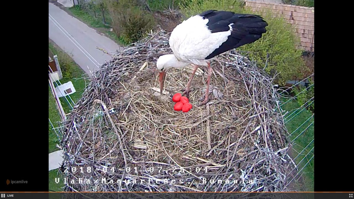 Piros tojásokat tojt a webkamerával megfigyelt magyarfenesi fészekben lakó Leske gólya – számol be a nem mindennapi hírről a Clujbird.ro honlap.